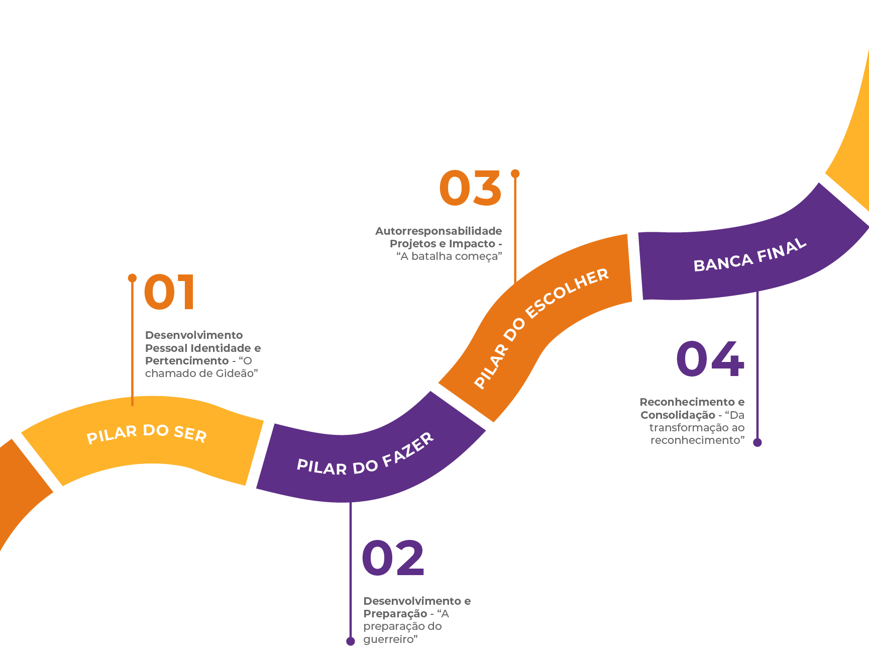 O programa também incorpora práticas do NaMoral, inspiradas na Jornada do Herói, que trabalham escolhas, caráter e valores, reforçando integridade, cidadania e coerência entre discurso e atitude.